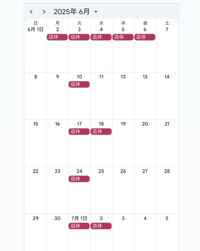 6月のお休みのお知らせをいたします。