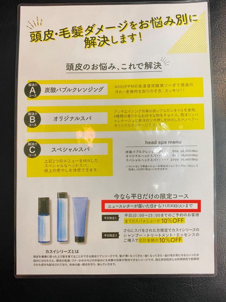 10月31日までの平日10時から15時までのご予約のお客様限定で、全てのスパメニューが10%OFFになるキャンペーンを実施しておりました。
